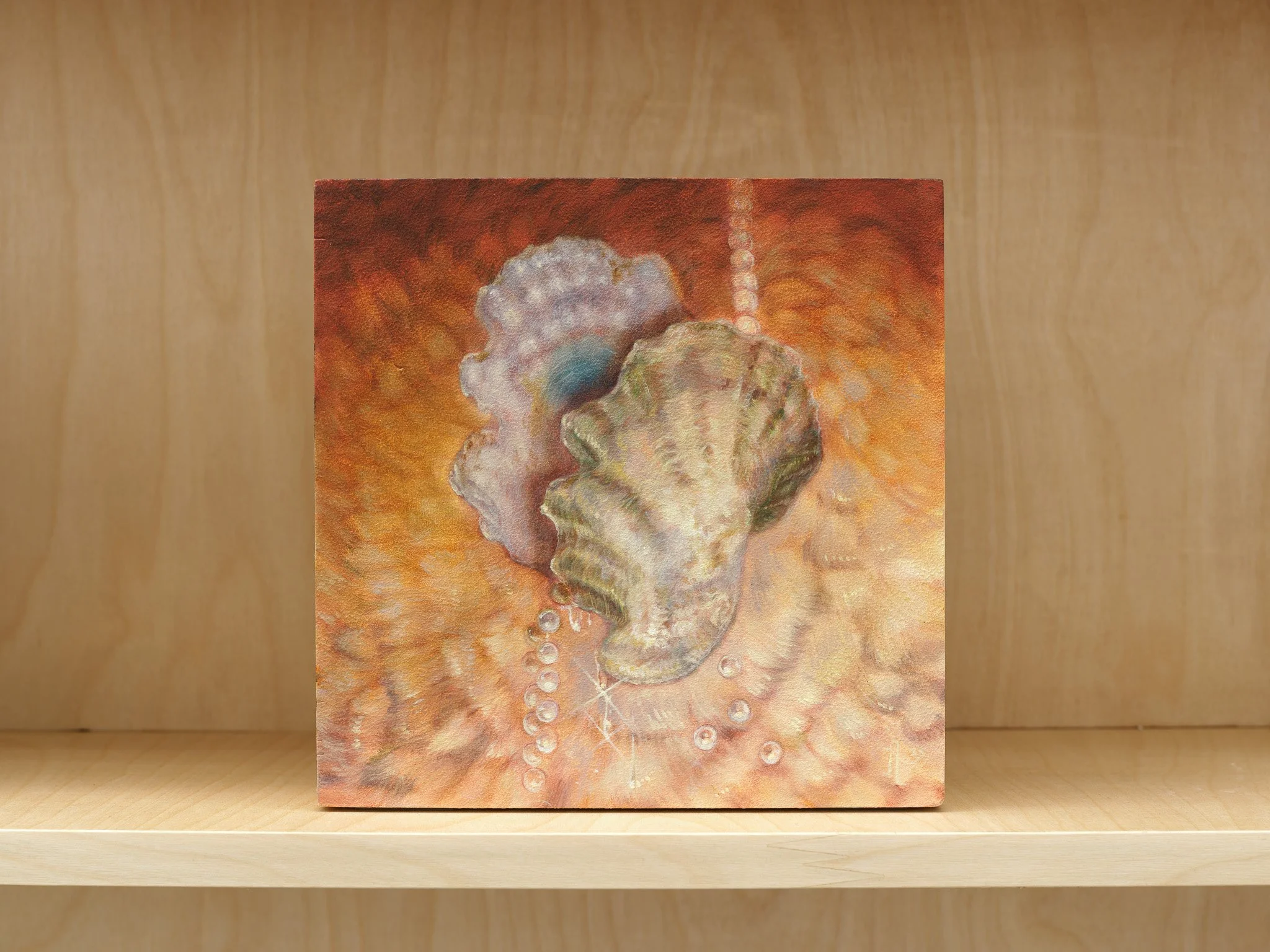 In addition to water, pearls emerge as a key symbol in the work. The slow process of a pearl forming within an oyster becomes a metaphor for memory—layered, hardened, and full of meaning. Like memories crystallized deep within us, pearls capture the unfolding of time and the cyclical nature of emotional and physical change.