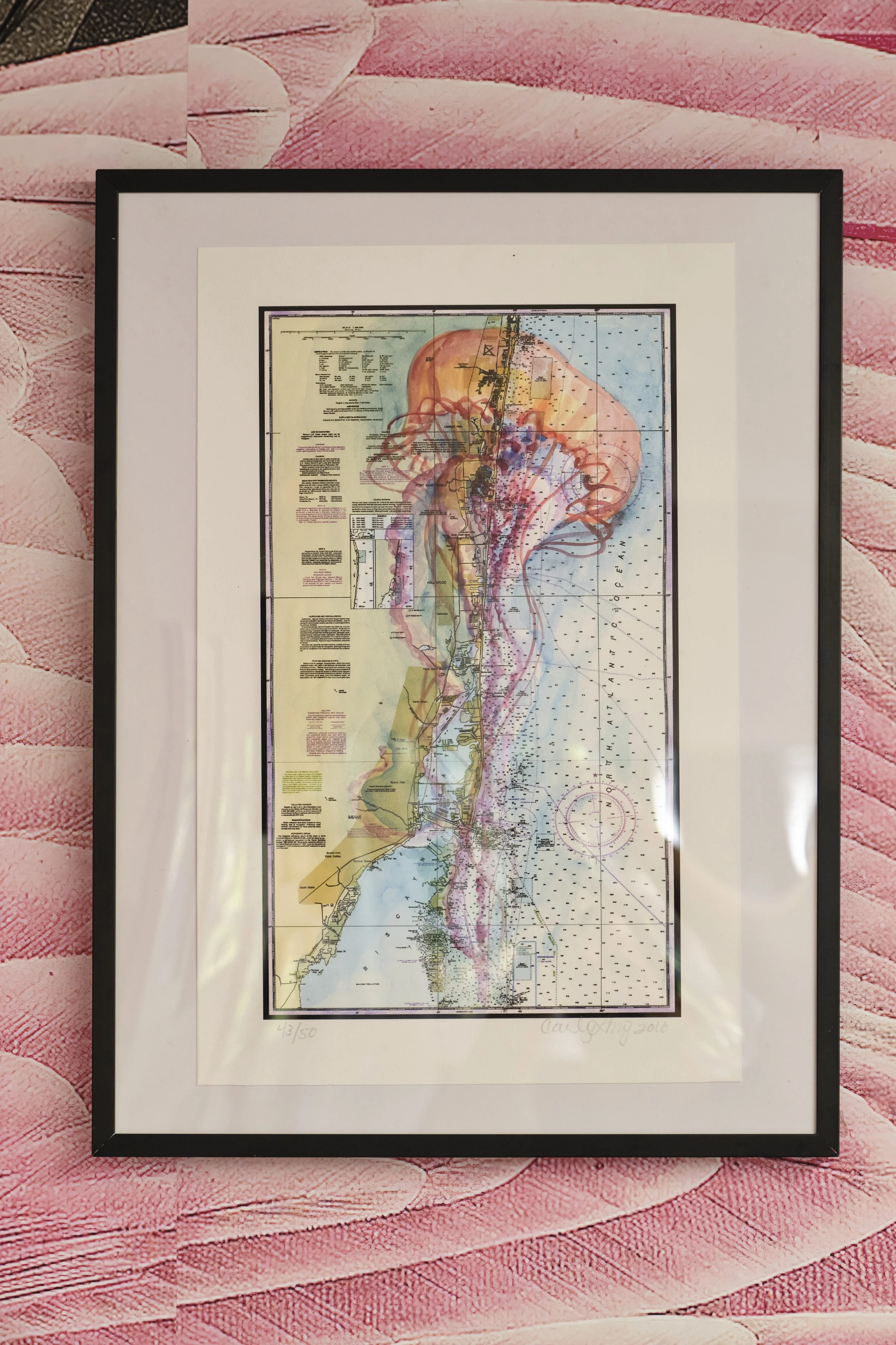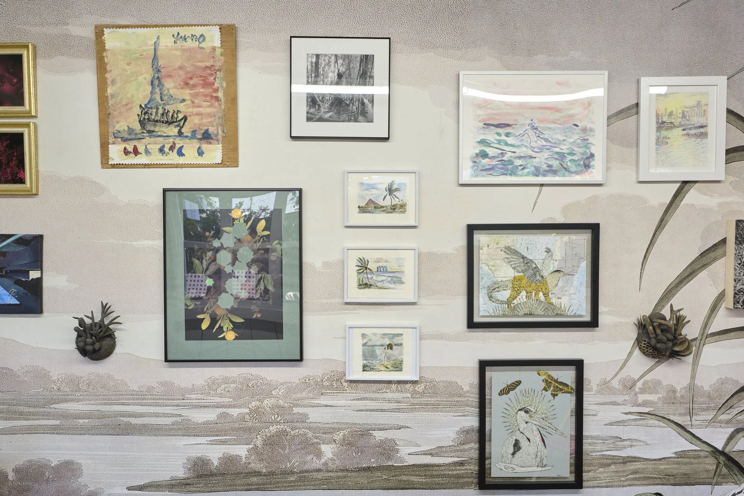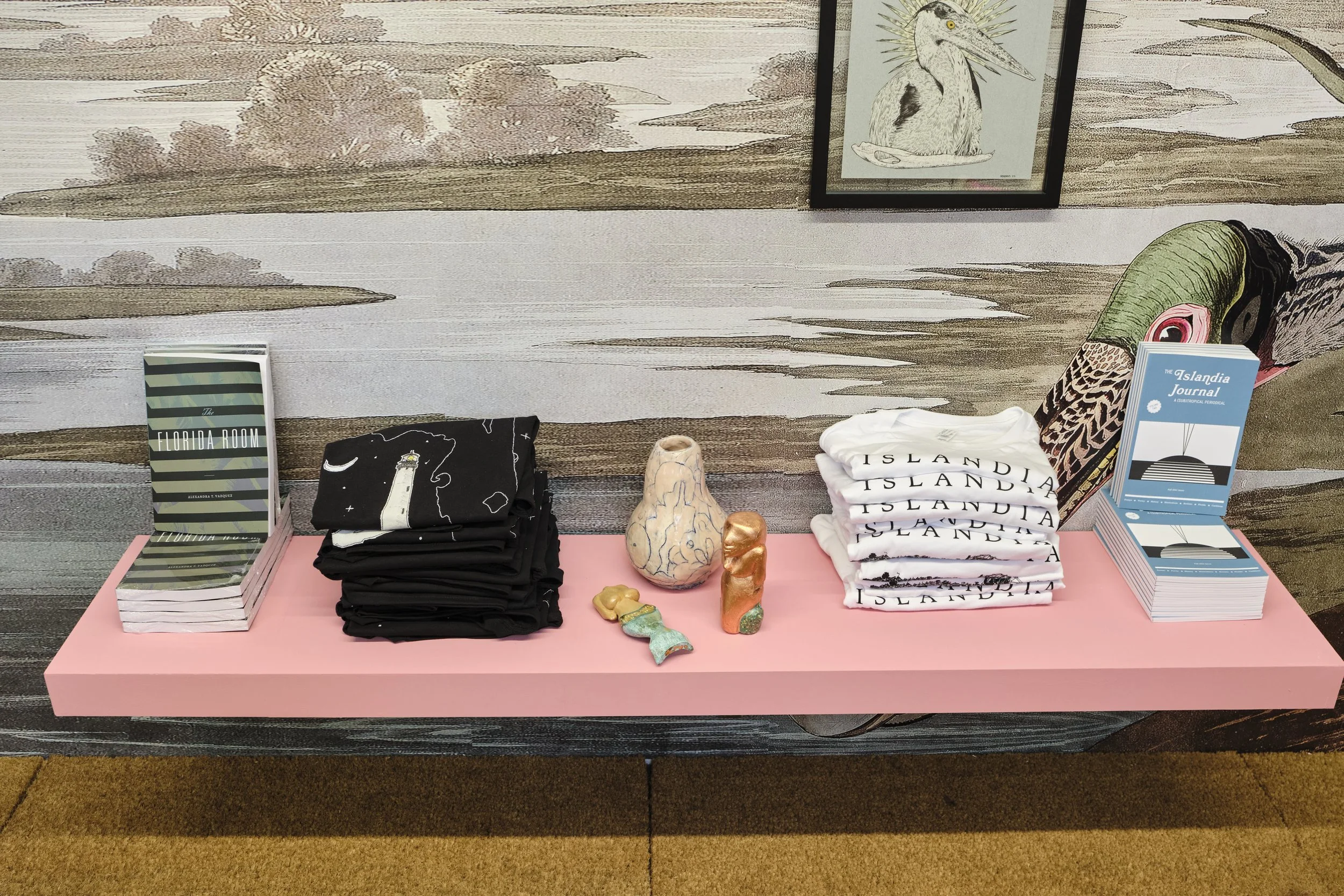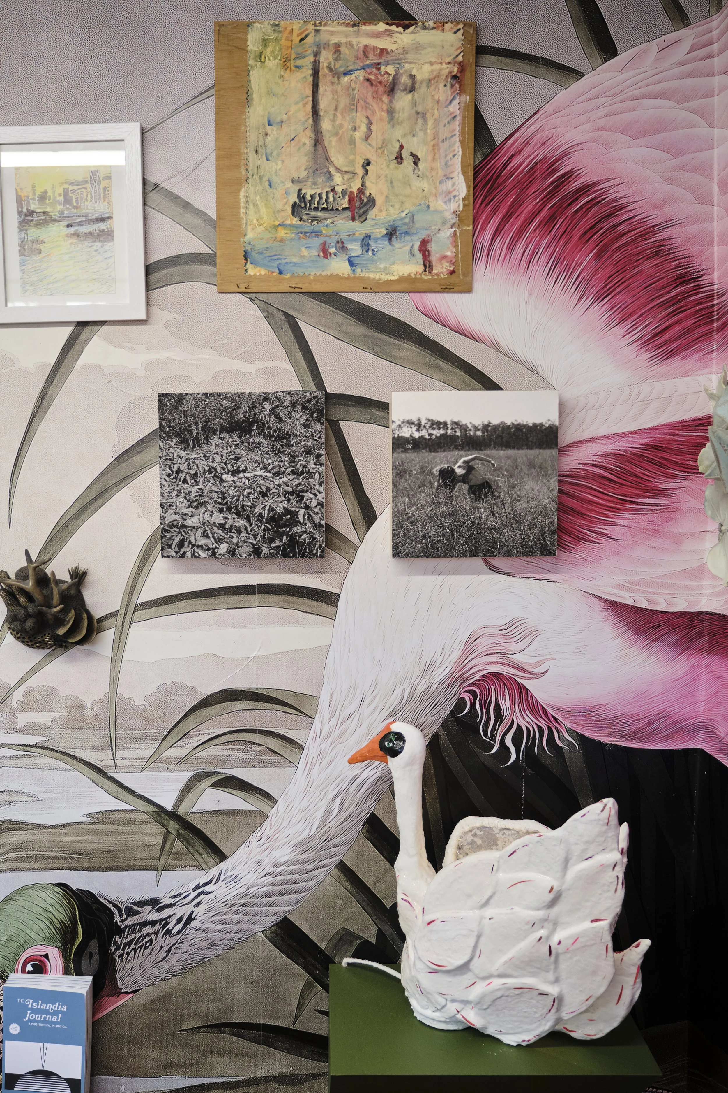 The exhibition is framed in the John James Audubon engraving of the Roseate Spoonbill, a species of particular concern in Florida. Serving as a beautiful reminder of the ecological fragility of this majestic state.