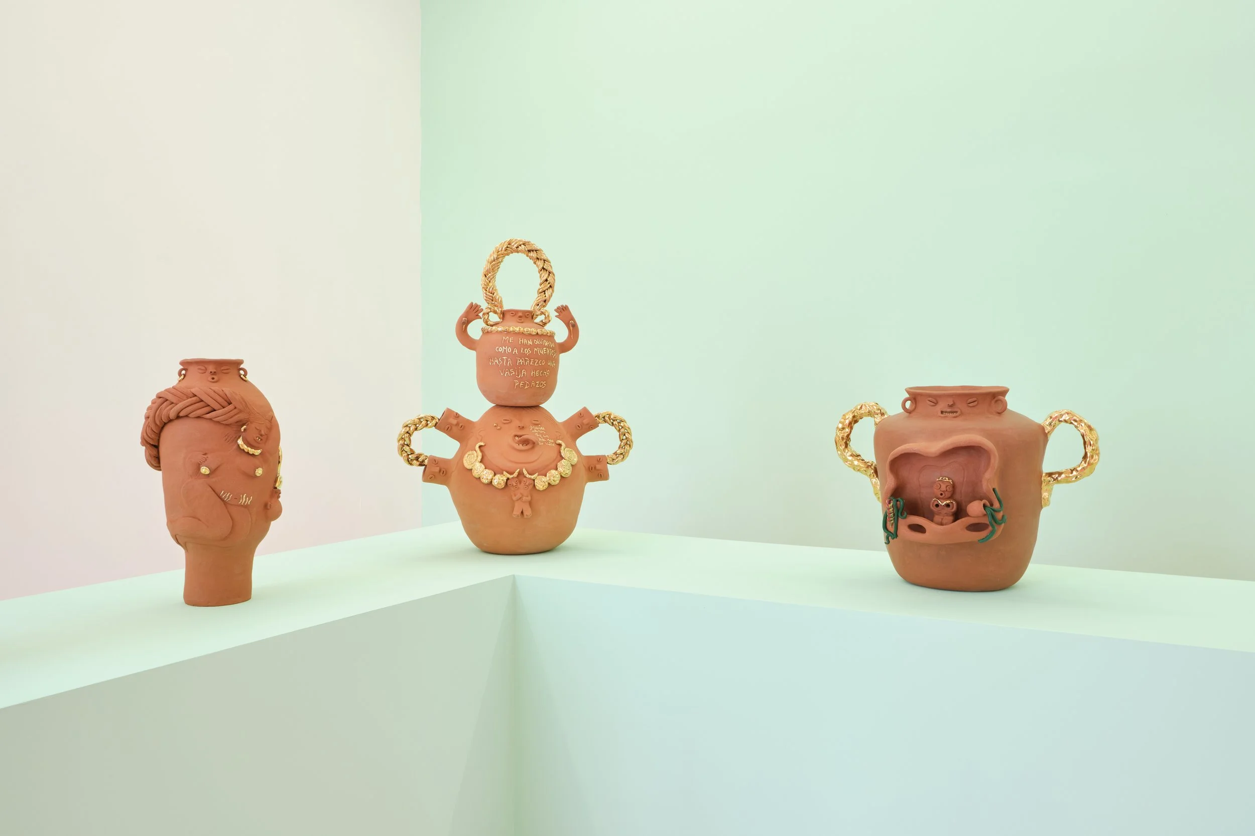 Image: Joel Gaitan, Ven, y te Sirvo, 2023, Terracotta with gold luster glaze