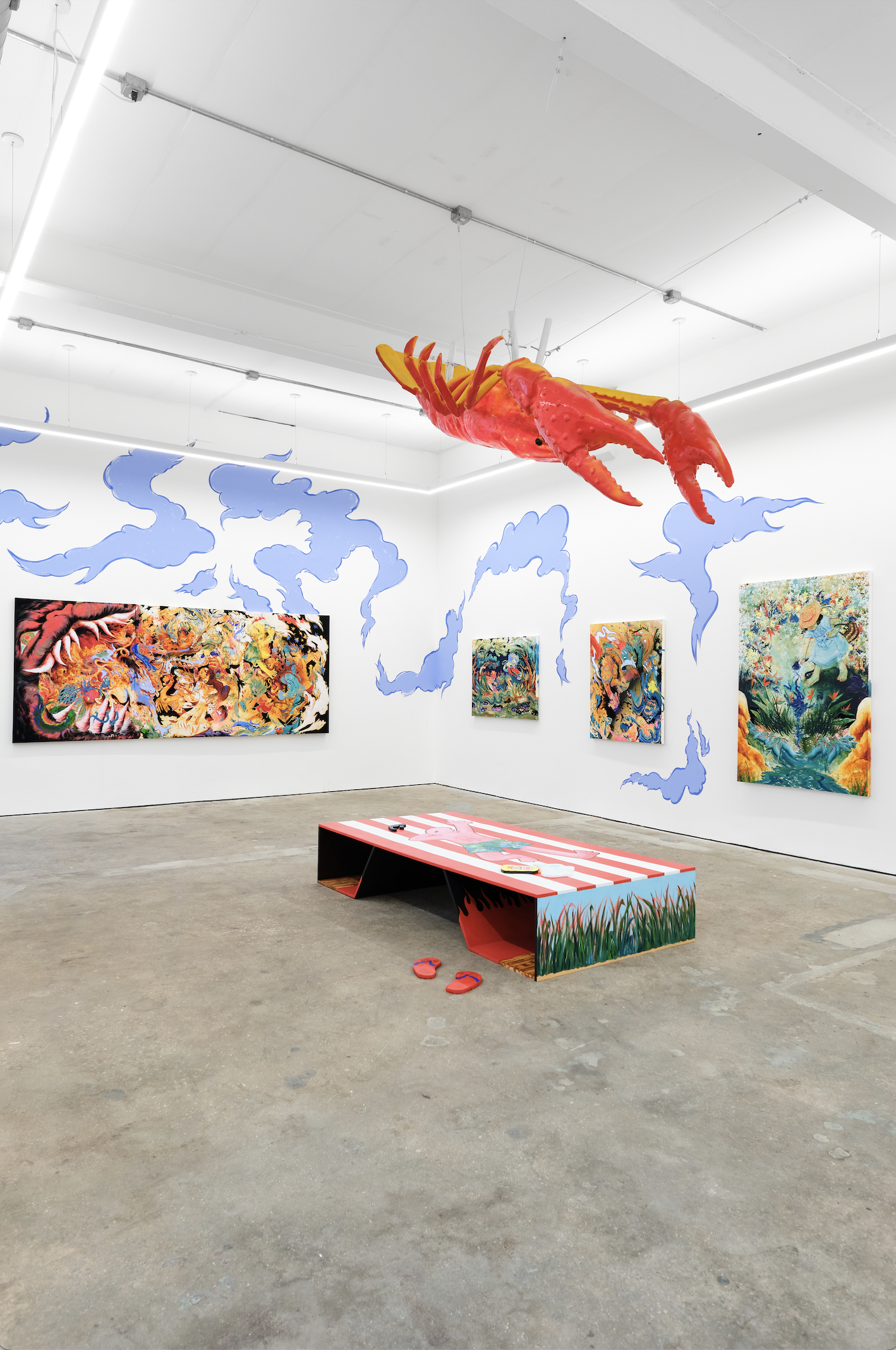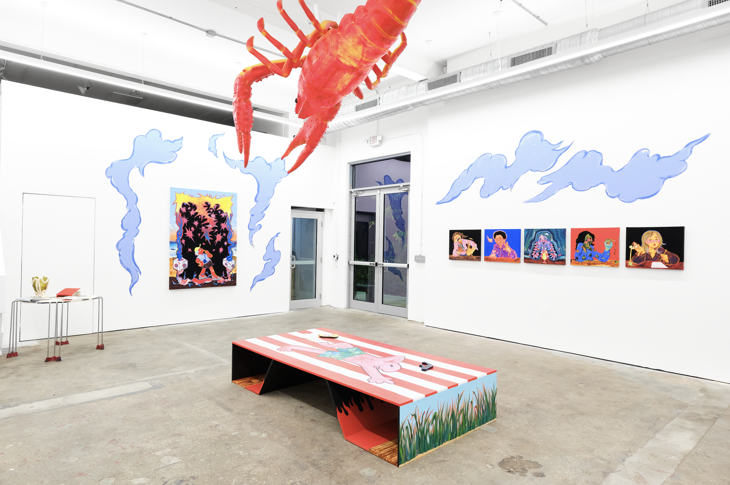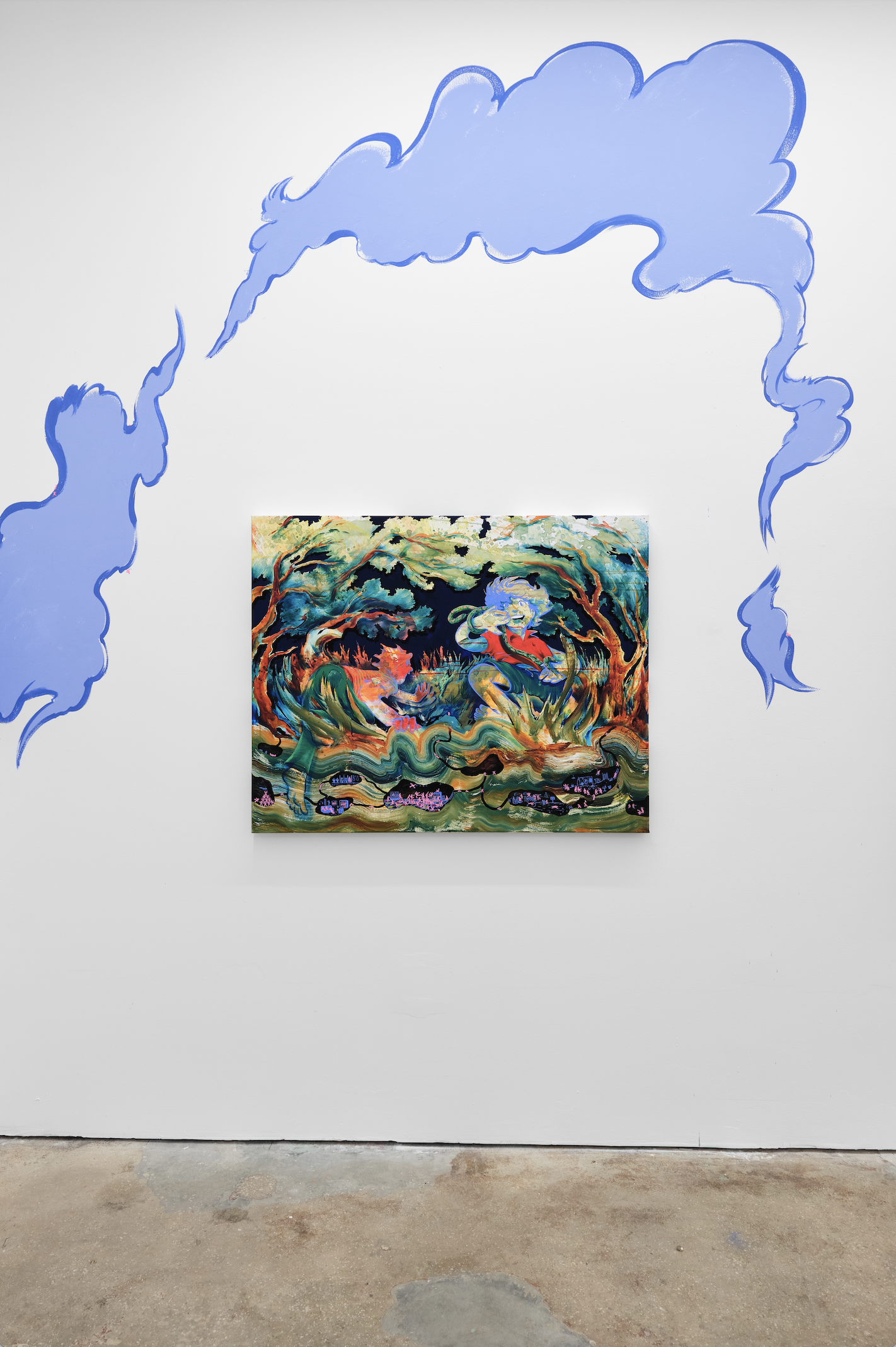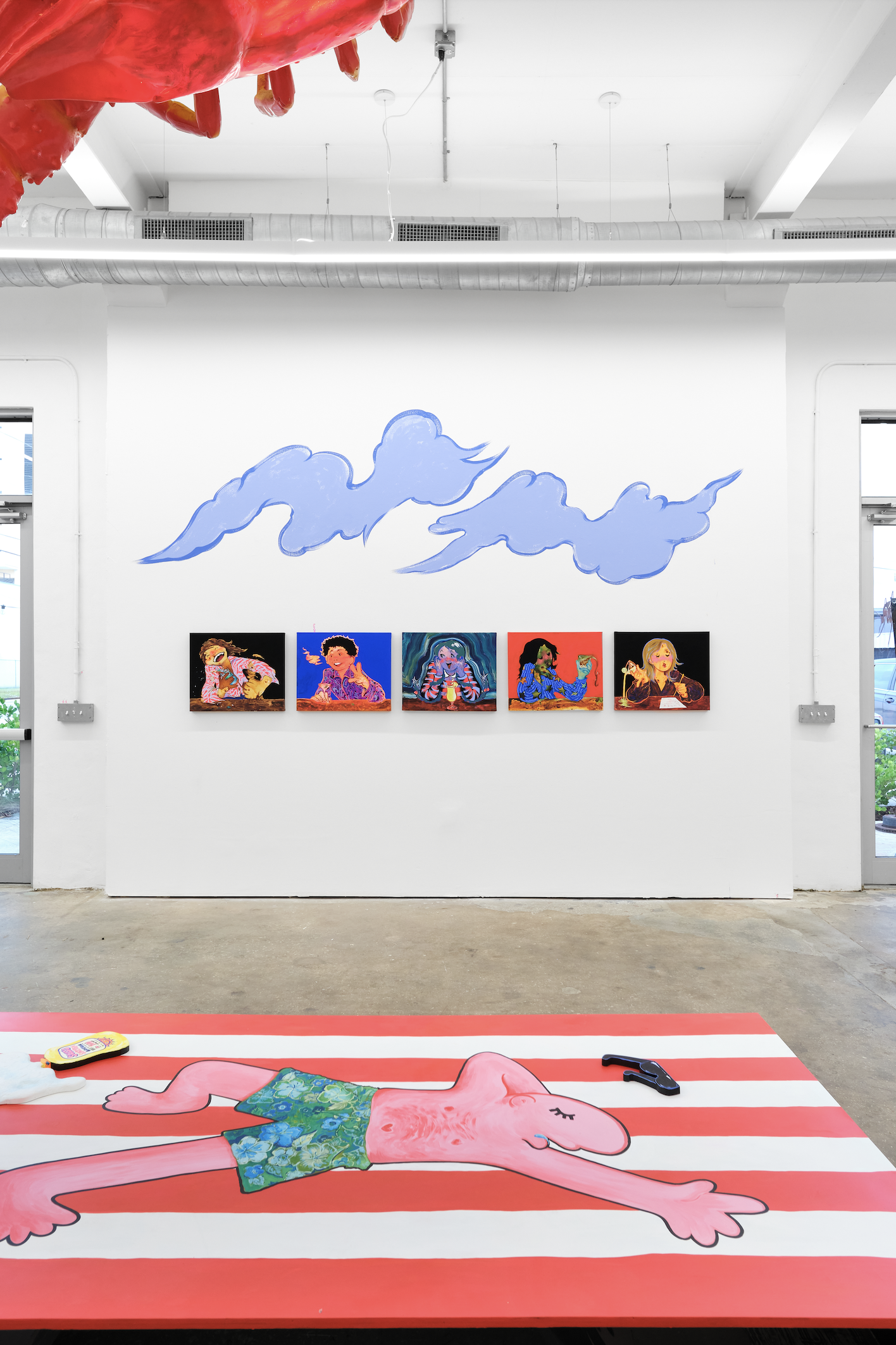 This new body of work positions Florida as a site of living folklore, where myth and daily routine blend in the subtropical heat. Bars, parties, and street scenes become stages for storytelling—small rituals of connection that reveal how time, community, and belief shape one another. With a compositional density that echoes Bruegel's teeming village scenes, Alvarez captures the simultaneous chaos and order of communal life, where every corner holds its own narrative. The exhibition's centerpiece, "Mouth of Miami," explores the passage of time through evolving ideas of sin, reflecting on how everyday acts of pleasure and self expression have, over the centuries, been regarded as moral thresholds.